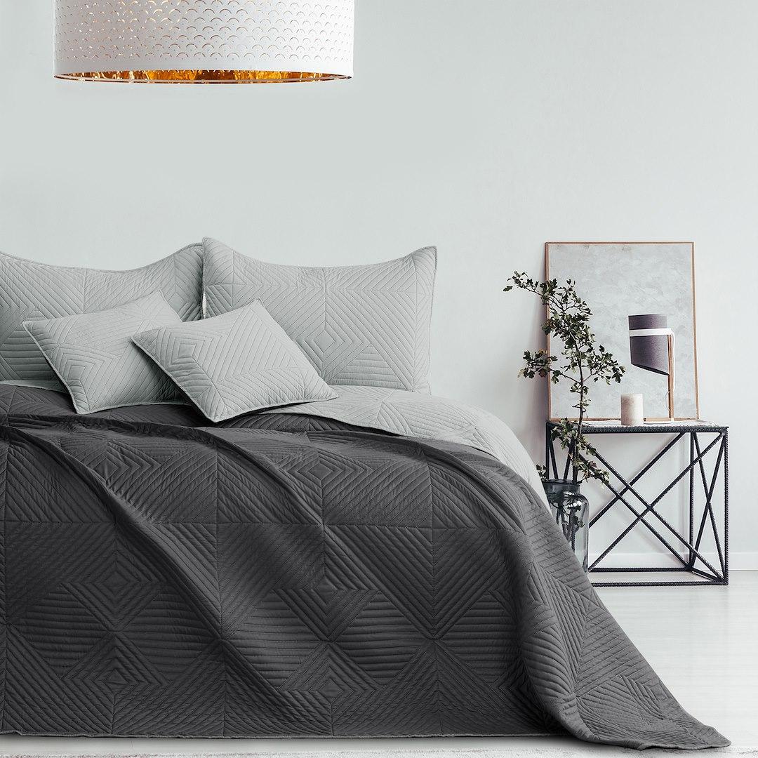 Dobbeltsidet quiltet sengetæppe 170 x 210 cm sort og grå